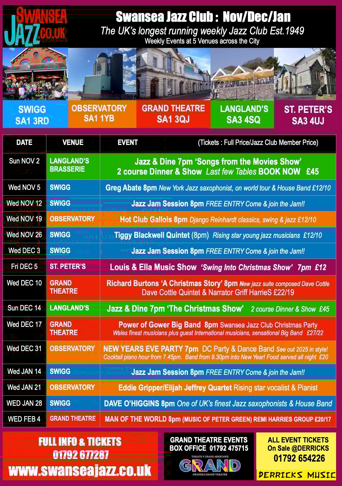 Swansea Jazz Club Events are taking place at 5 Venues around Swansea