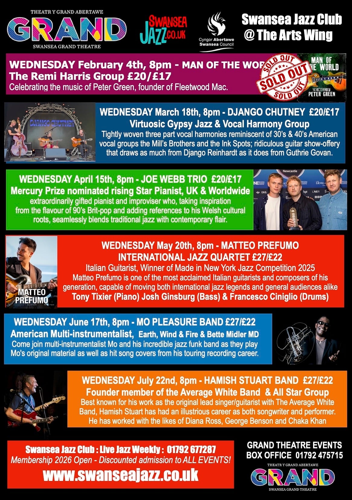 Swansea Jazz Club is seeking sponsors for our new monthly events in the Arts Wing at Swansea Grand Theatre. We are looking for support to help with the increases costs that come with hiring the Arts Wing, Individual Events can be sponsored or a series of events,
