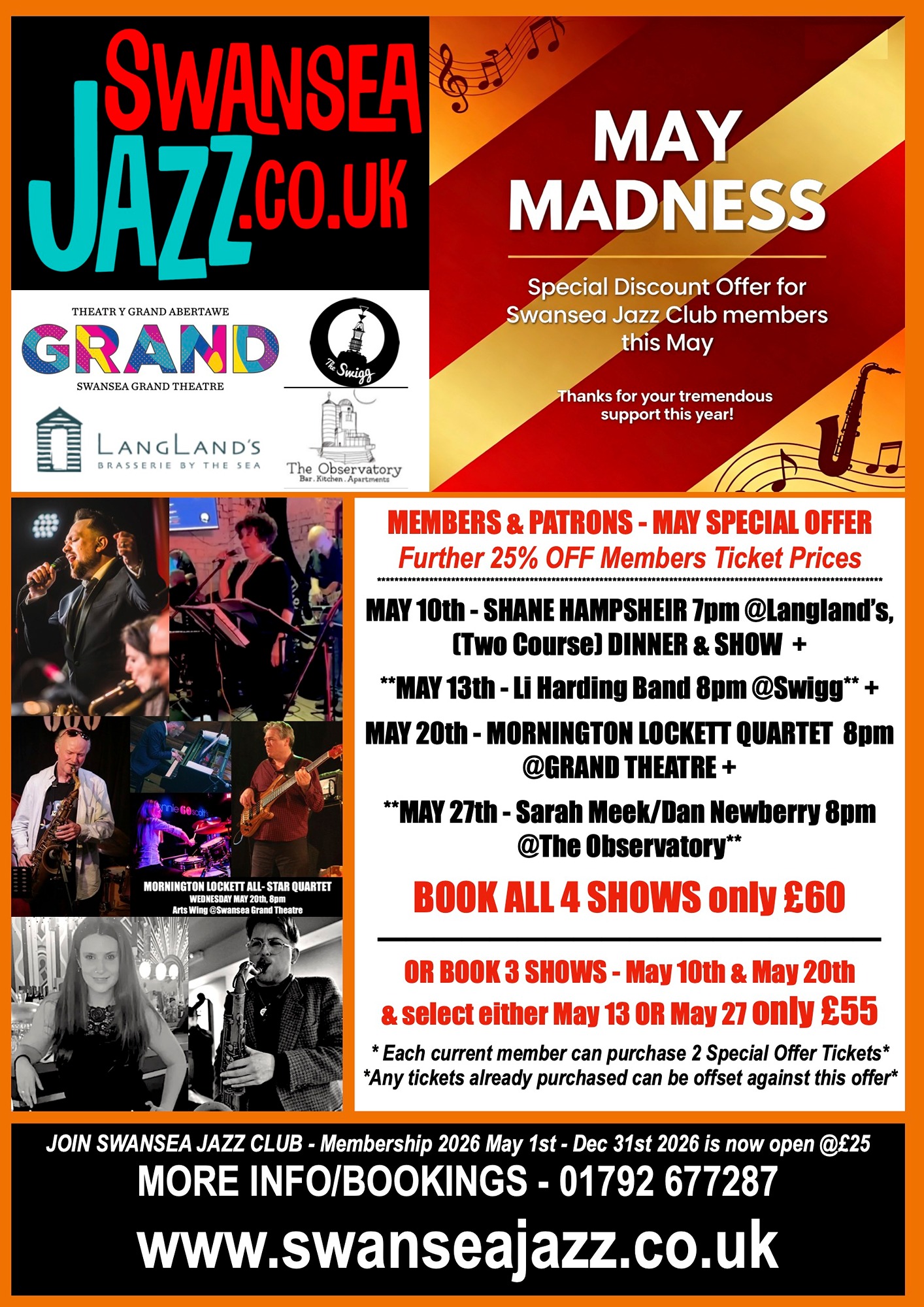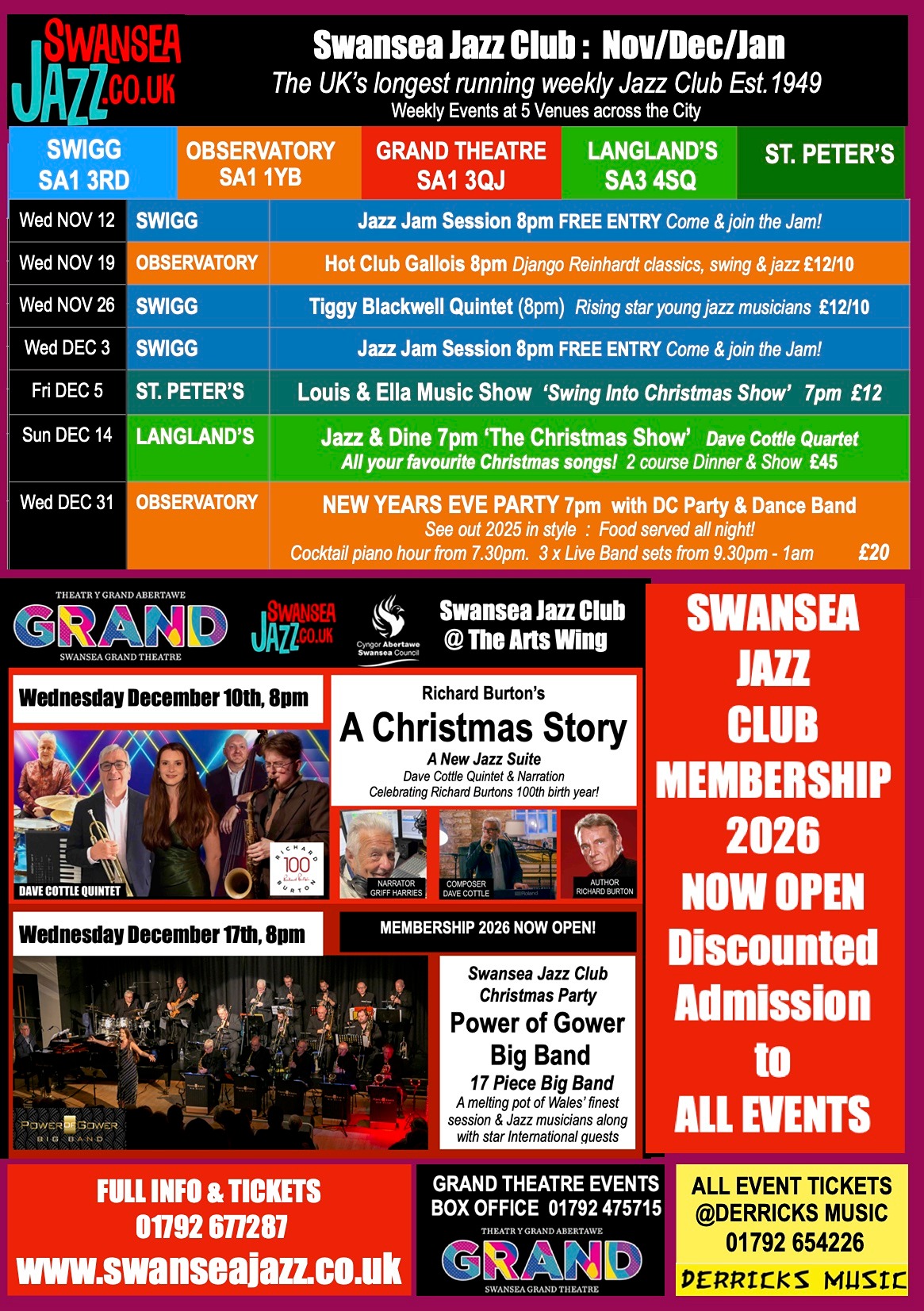 Join 'Friends of Swansea Jazz Club' to receive Swansea Jazz Newsletter (Enter your email at the bottom of the page!)