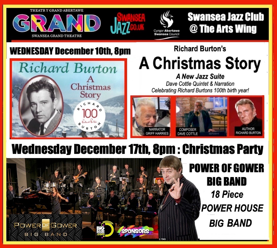 'A Christmas Story' was written by Richard Burton in 1965. Having lost his mother at only 2 years of age, Richard is living with his older sister in Port Talbot by the age of 8. It's Christmas Eve and Richard is pondering Christmas gifts. However he is worried that his sister is about to die as she has taken to her bed and many people are attending to her. He is told to leave the house and goes out around the town accompanied by his Uncle, 'Mad Dan' a bit of an off the wall character. They head off towards the bonfire at 'the end' where miners and the community are gathered. This piece 'Off you go Boyo' reflects on that moment with his 'Mad' Uncle Dan as they head off out. "A Christmas Story' Richard Burton JAZZ SUITE, Arts Wing @Grand Theatre Wednesday December 10th, 8pm