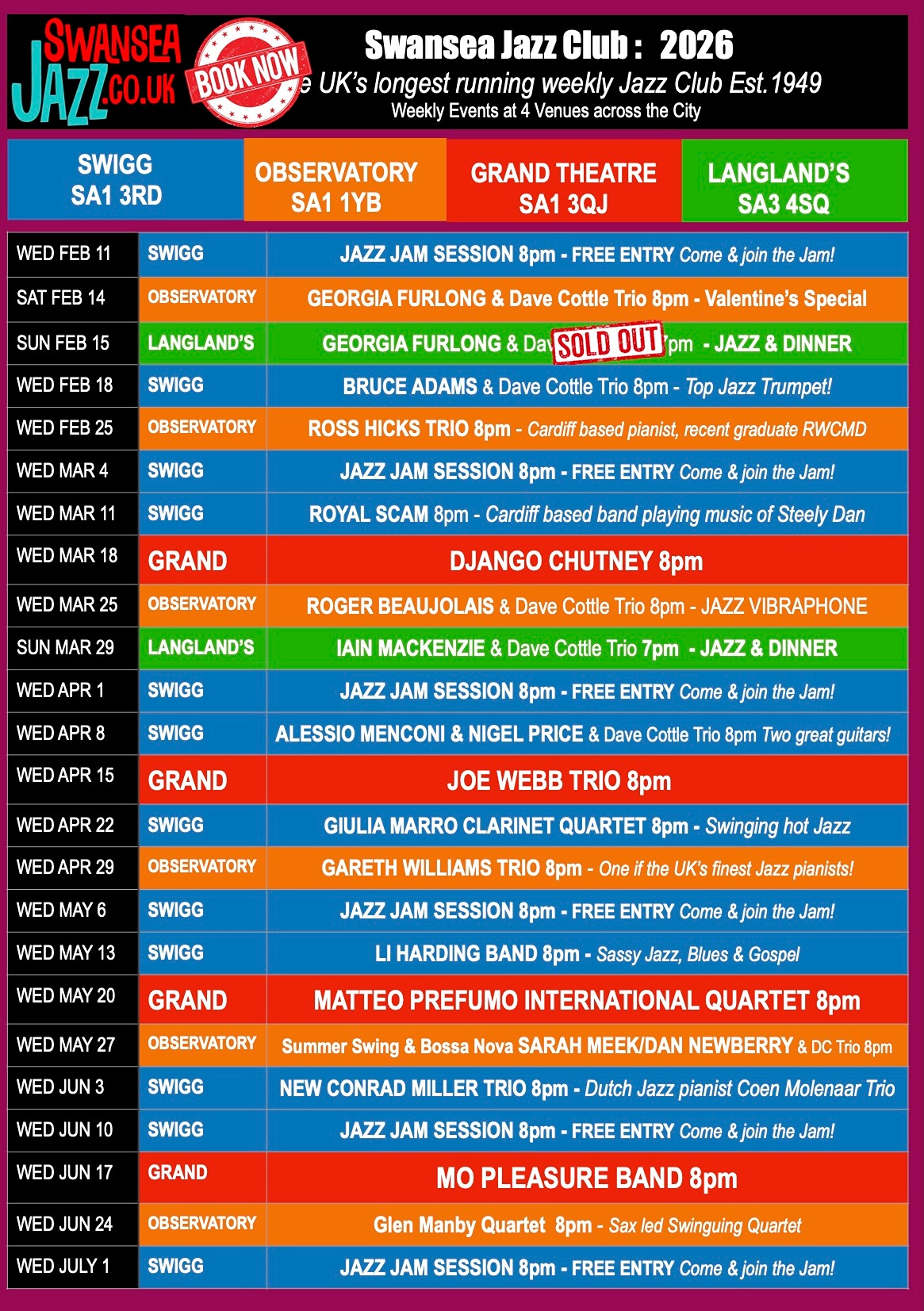 Coming up Swansea Jazz Club February & March 2026.....