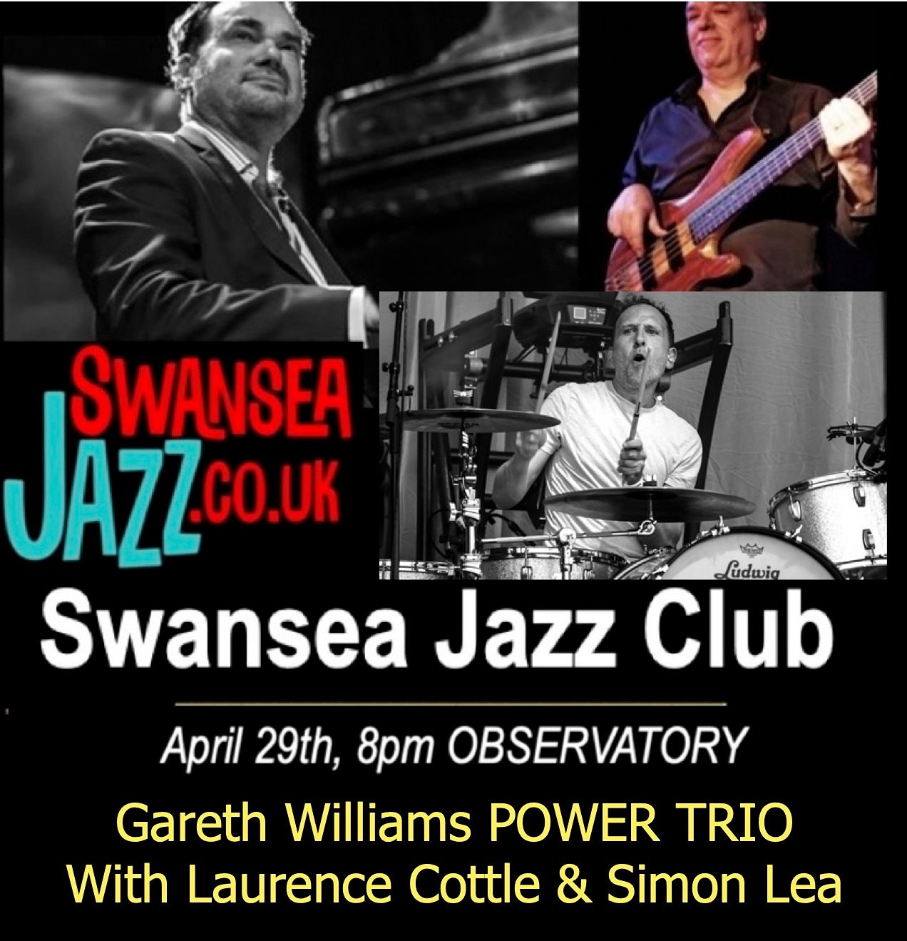 WEDNESDAY APRIL 29th, 8pm @Observatory GARETH WILLIAMS POWER TRIO with Laurence Cottle & Simon Lea